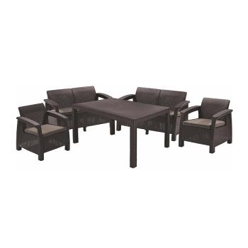 Комплект садовой мебели Corfu II Fiesta brown – для большой и дружной компании, ведь он состоит из 2 диванов, 2 кресел и полноценного обеденного стола.