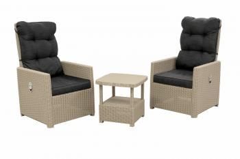 Премиальная итальянская мебель для сада и уличных кафе MANCHESTER SET 2 от итальянского производителя B:Rattan, включает два кресла-шезлонга и столик. Пластиковый комплект порадует любителей плетеной мебели своей фактурой в стиле ротанг и прочностью: максимальная до 150 кг.
