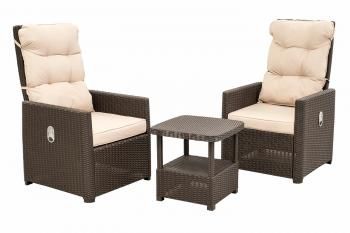 Стильный сет из двух кресел-шезлонгов с кофейным столиком добавит европейского шика экстерьеру.