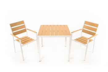 Комплект садовой мебели DS-07-01-02 выполнено из высококачественных материалов, имеет в основании прочный алюминиевый каркас. Сидение и спинка кресел, а также столешница, выполнены из террасной доски. Изделия из террасной доски обладают целым набором плюсов: • Выдерживает существенные нагрузки; • При должном уходе и обработке служит не менее 20 лет; • Допускается влажная и сухая очистка; • Морозо- и влагостойкие. Подходит для использования внутри помещения и на открытом воздухе. В комплект входит столик и 4 кресла. Кресла поставляются в собранном виде, столик в разобранном виде. Кресла и столик не складные. Размеры кресла: высота – 88 см, ширина – 54 см, глубина – 57 см. Размеры стола: высота – 73 см, ширина/глубина – 80 см. Максимальная нагрузка до 100 кг.