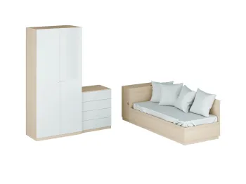 Спальные гарнитуры от ОГОГО отличаются непревзойденным внешним видом, высоким качеством и стильным дизайном. ЛДСП – это гарантия долговечности мебели, релакса и полноценного расслабления. Самым главным предметом комплекта является кровать, которая в этом комплекте идеально впишется в спальную комнату любого размера.