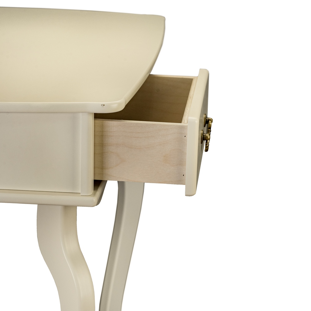 В сочетании с банкеткой и зеркалом из серии “Берже” создаст приватный женский туалетный уголок; отлично смотрится как подставка под большую вазу с цветами, статуэтку, или комнатное растение в сочетании с зеркалом;