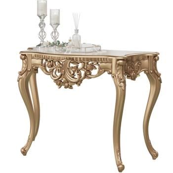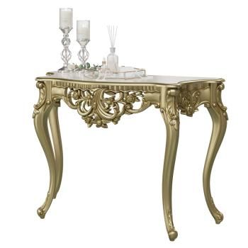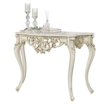 Консоль КН-01 – изящный пристеночный столик с фигурной столешницей на точеных ножках и подстольем, украшенным цветочным орнаментом, станет яркой изюминкой в оформлении интерьера Вашего дома. Столик выполнен в дворцовом стиле и, несомненно, придется по душе любителям роскоши и аристократического шика. Столешница, изготовленная из МДФ, имеет оригинальную форму, подчеркивающую изумительный дизайн стола.