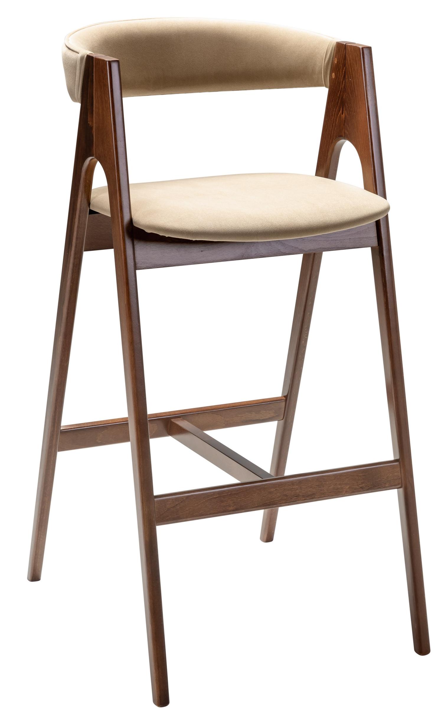 Кресло барное R-home Kaede — элегантное и удобное решение для современных интерьеров. Это кресло сочетает классическую эстетику с инновационными технологиями, создавая гармоничный баланс между стилем и комфортом. Изогнутая спинка, плавно переходящая в подлокотники, обеспечивает поддержку спины и рук, а каркас из массива дерева с отделкой гнутоклееным шпоном придает модели прочность и натуральность.