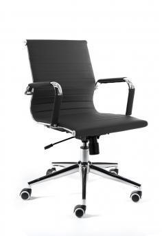 Из самых главных элементов любого рабочего кабинета является кресло для персонала. Ведь именно офисная мебель и гарантирует на сколько продуктивным будет труд сотрудников. К особенностям данной модели можно отнести стильную крестовину, обивку из высококачественной экокожи, представленную в черном цвете, а также хромированные подлокотники со съёмными накладками на молнии. Кресло дополнено комфортным механизмом качания, с помощью которого можно зафиксировать себя в нескольких рабочих положениях. У этой модели нет слабых мест, она является стильным и надежным помощником во время рабочего процесса за компьютером.
