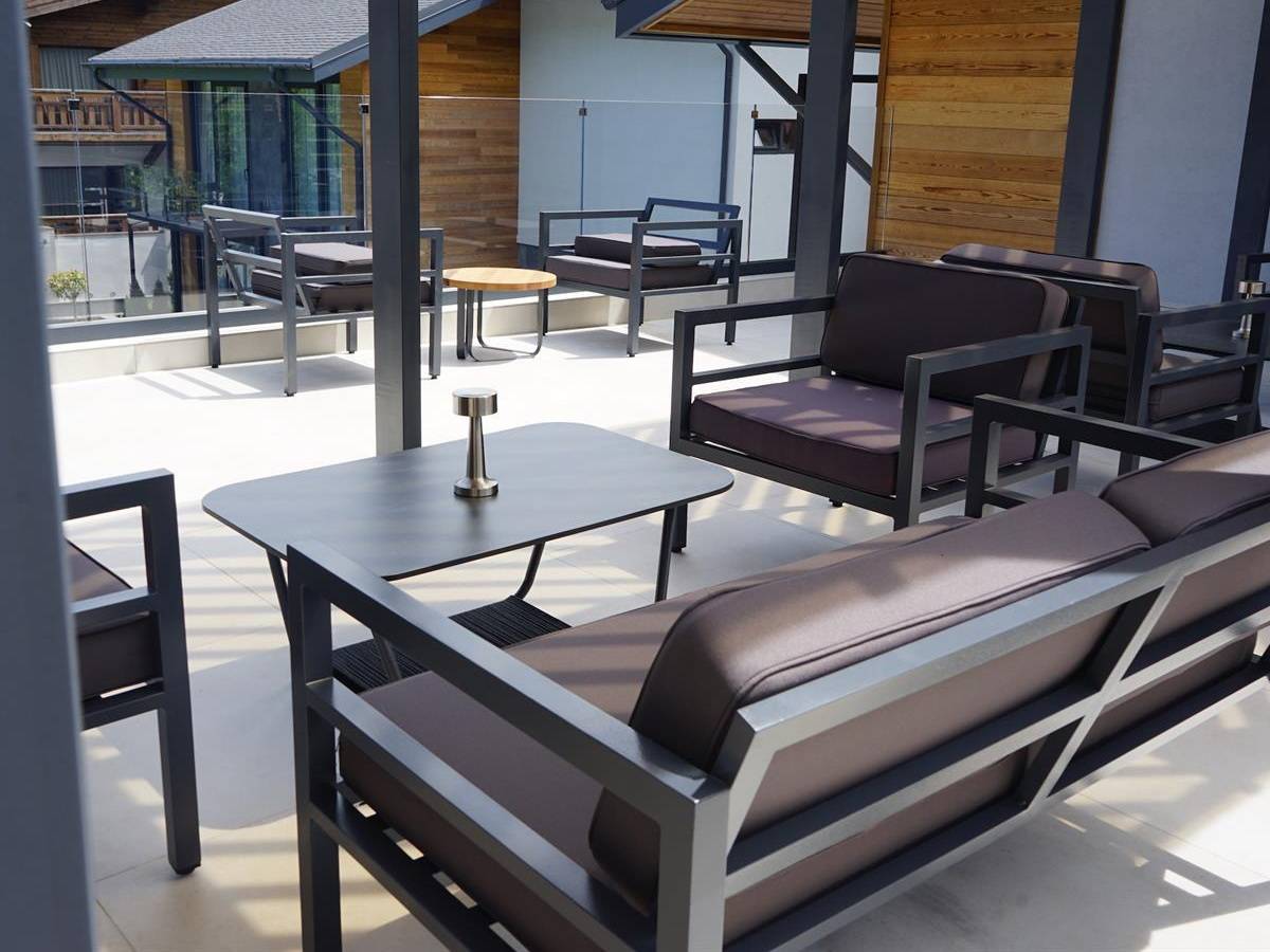 В комплекте на сидениях и спинке предусмотрены подушки контрастного темно-серого оттенка со съемными чехлами. Строгое лаконичное кресло подходит для использования на открытом воздухе и в помещении, в том числе и в зоне повышенной влажности.