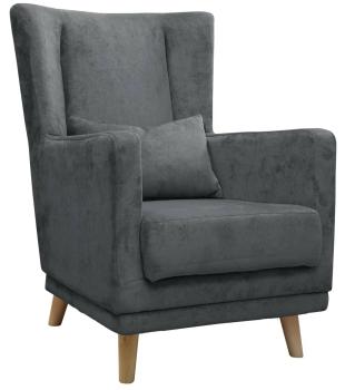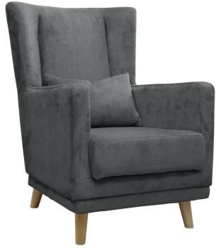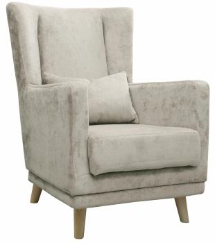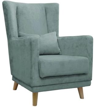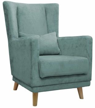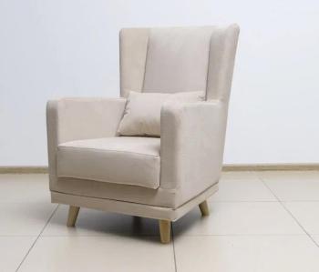 Комфортное интерьерное кресло незаменимый атрибут гостиной. Опоры у этой модели деревянные.