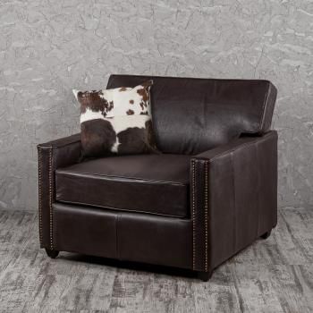 Кресло “Гранд” выполнено в современном стиле из кожи буйвола и натурального дерева акации. Мебель изготовлена в Индии.