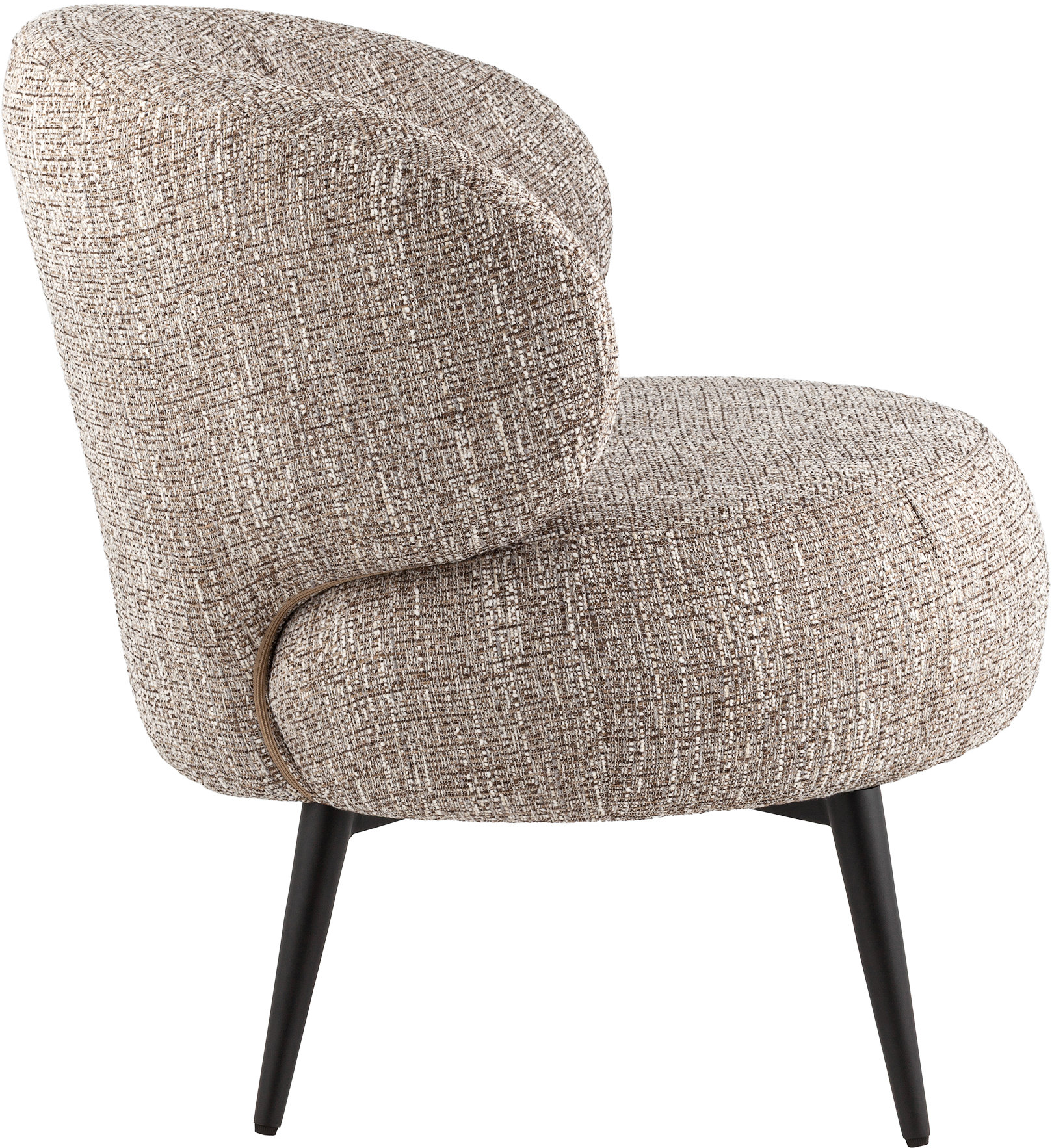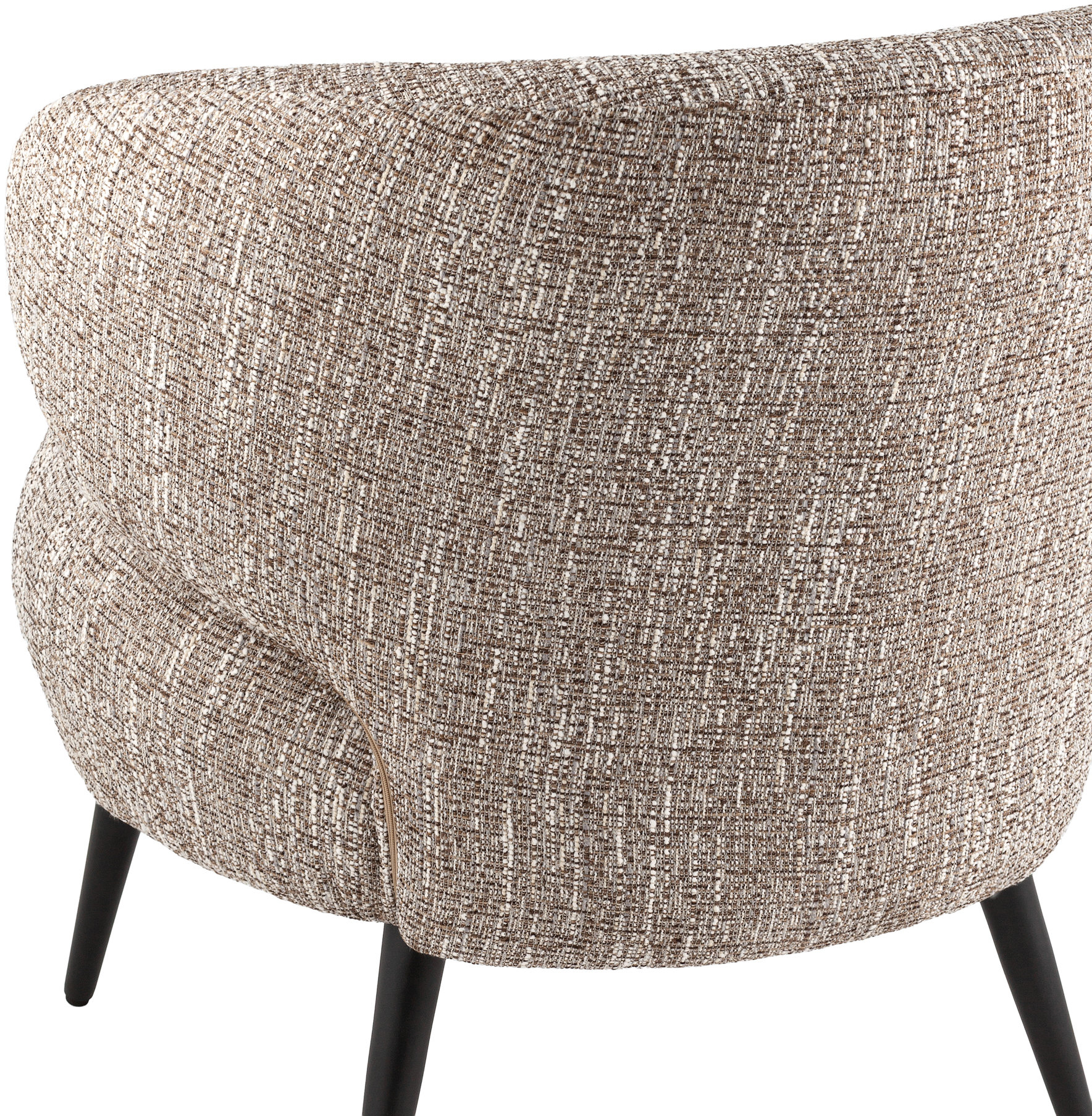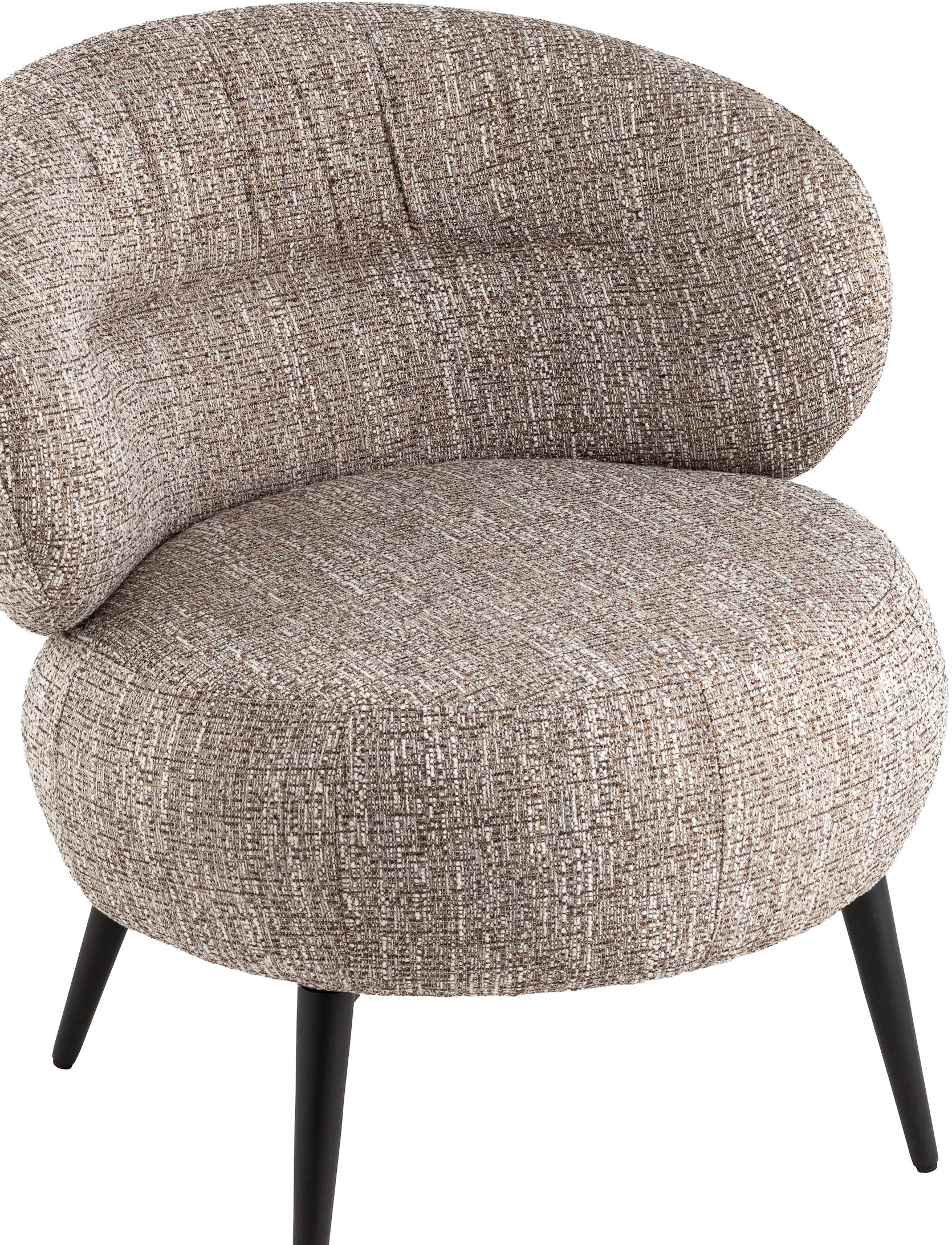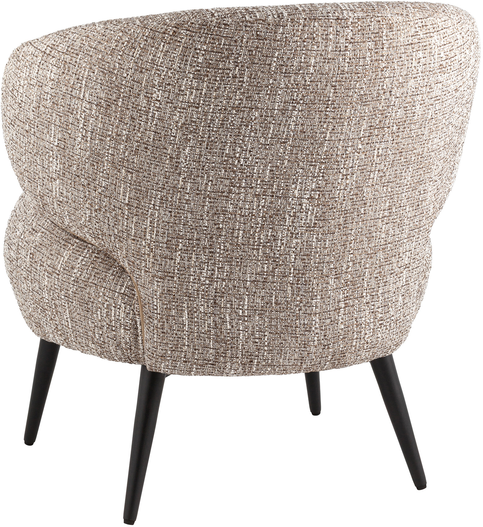 Кресло Rivo выполнено в современном дизайнерском стиле: плавные линии, округлые формы и компактные пропорции делают его элегантным акцентом в интерьере. Полукруглая спинка и широкое сиденье создают ощущение уюта и расслабленности, а тонкие металлические ножки добавляют визуальной лёгкости конструкции.