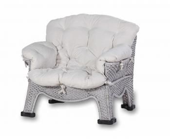 Удобные спинка и подлокотники, сидение и ножки оплетены плетением различных узоров. Ножки кресла расширяются к верху, создавая впечатление поддержки сидения. К низу плетение сужается, придавая креслу воздушность и изящество. По всем четырем столам плетение имеет волнообразную форму, придавая столу большую элегантность.