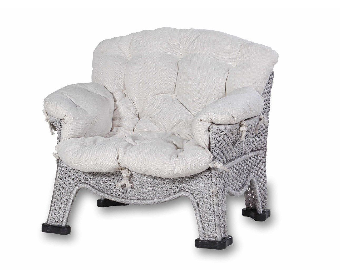 Основа конструкции – металлическая. Но, несмотря на это, кресло не выглядит громоздким благодаря тонкому полиамидному плетению.