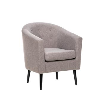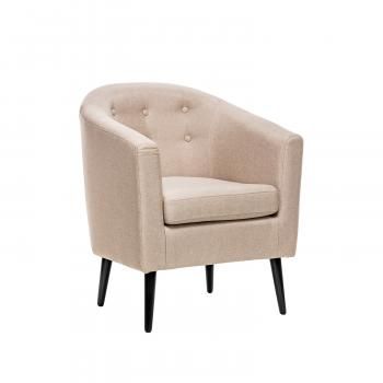 Линия спинки мягко перетекает в зону подлокотников, а экологичная мебельная ткань и мягкая подушка добавят приятных тактильных ощущений. Данная модель имеет высокие конусообразные ножки, мебельный декор в виде пуговиц обтянутых в тон ткани.