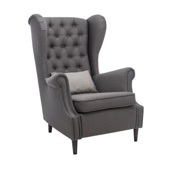 Кресло выполнено из натуральных материалов — берёзовой фанеры, букового каркаса и тканей, таких как рогожка или велюр. Это делает изделие экологичным и долговечным. Декоративная подушка для поясницы добавляет дополнительный комфорт и эстетику.