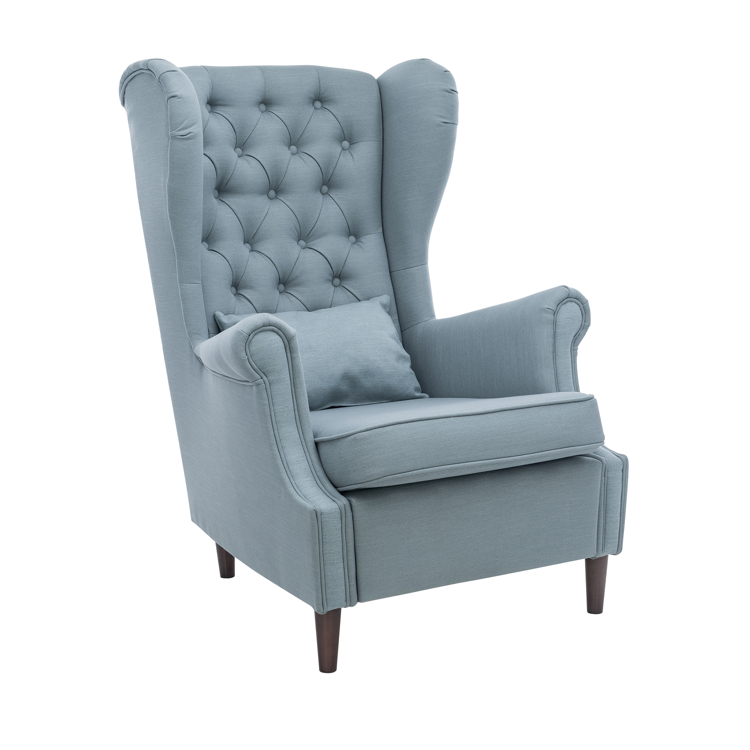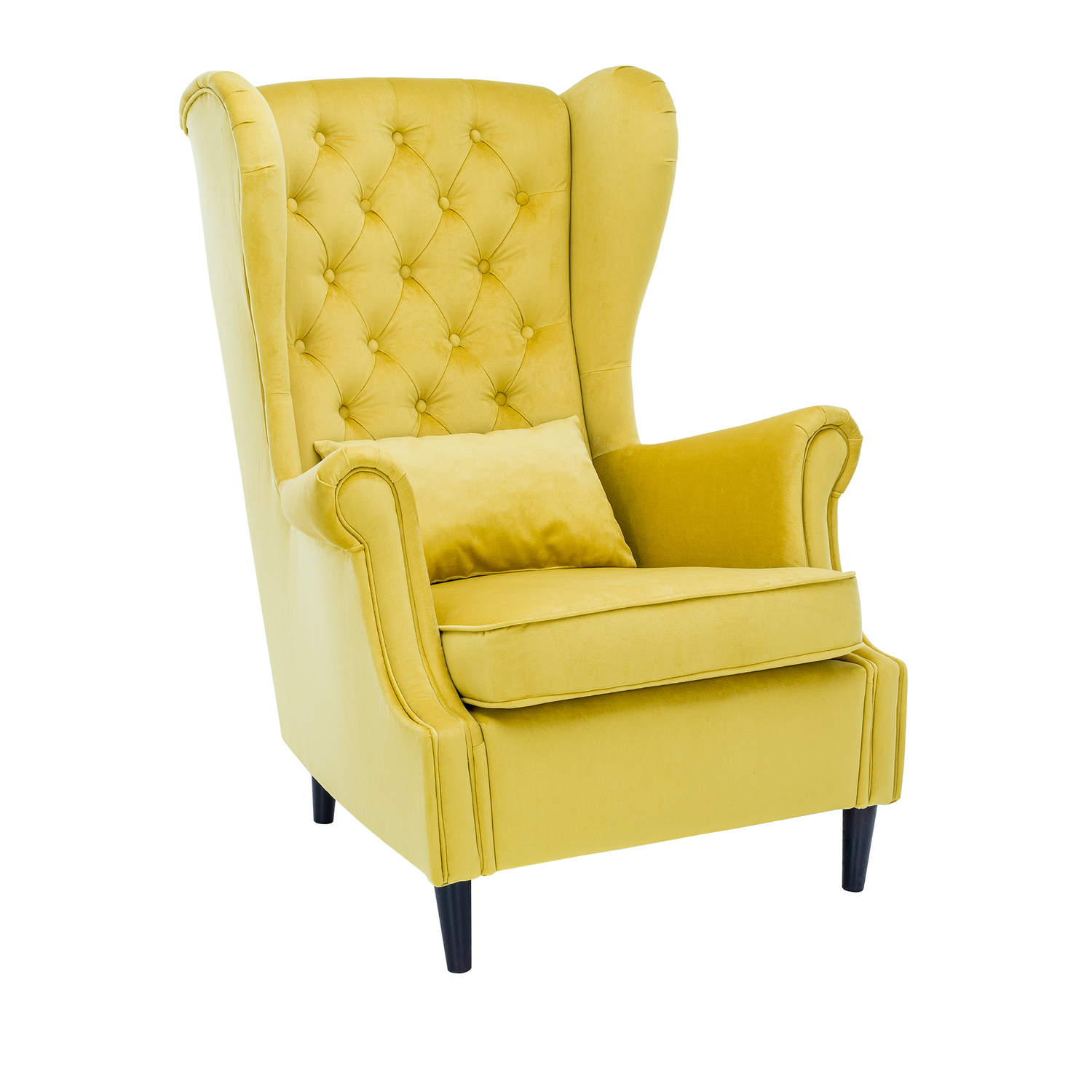 Кресло выполнено из натуральных материалов — берёзовой фанеры, букового каркаса и тканей, таких как рогожка или велюр. Это делает изделие экологичным и долговечным. Декоративная подушка для поясницы добавляет дополнительный комфорт и эстетику.
