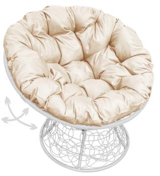 Кресло M-group ПАПАСАН пружинка с ротангом белое