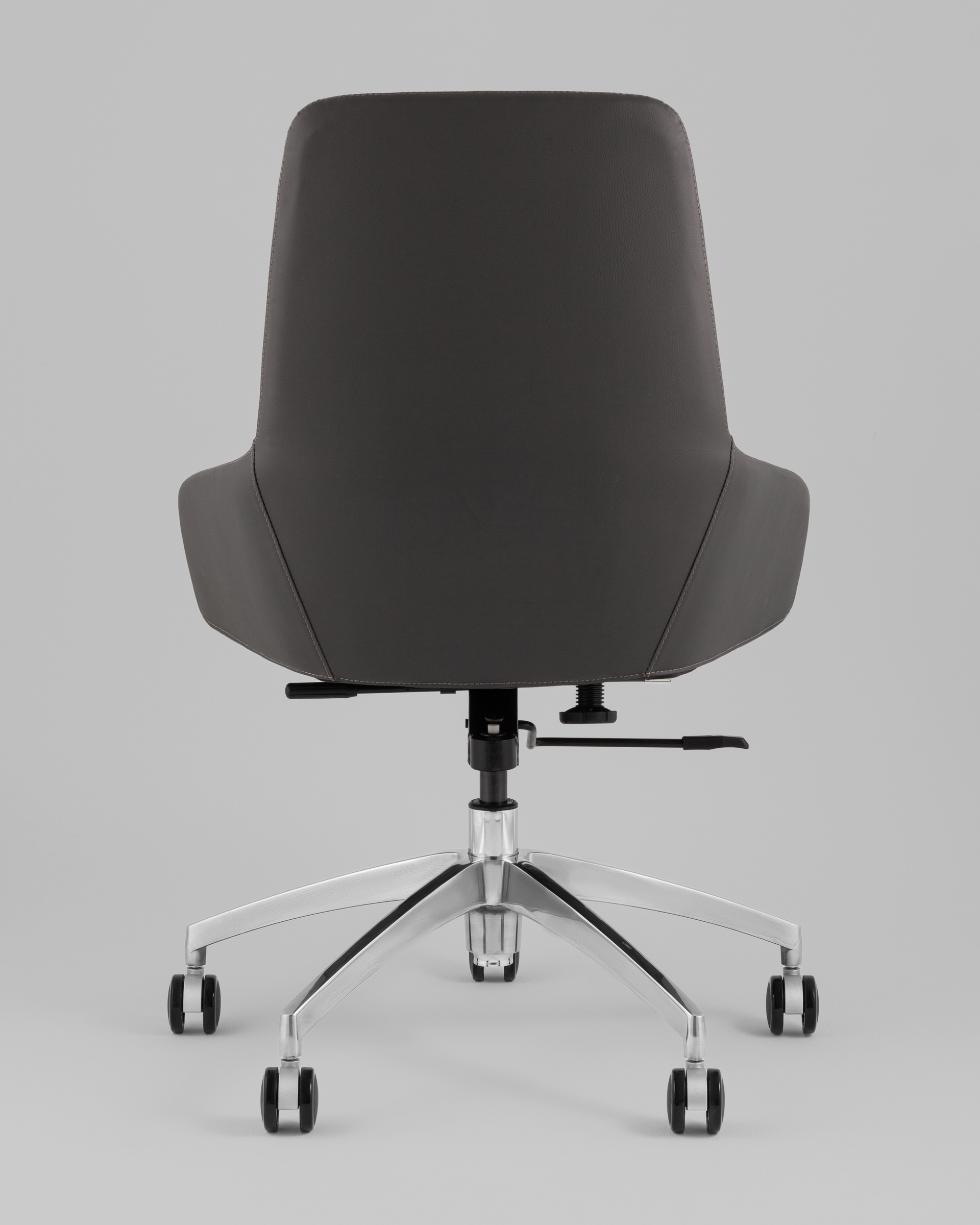 Материалы и цвета. Кресло обтянуто светло-серой экокожей, которая приятна на ощупь и проста в уходе. Задняя часть спинки выполнена в контрастном коричневом цвете, что придает модели современный и стильный вид. Алюминиевая крестовина обеспечивает устойчивость и долговечность, а полиуретановые ролики с нейлоном позволяют легко и бесшумно перемещаться по любым покрытиям пола.