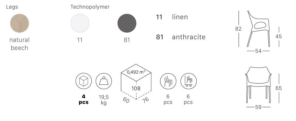 Возможность штабелирования до 6 шт. обеспечивает компактность и мобильность кресел.