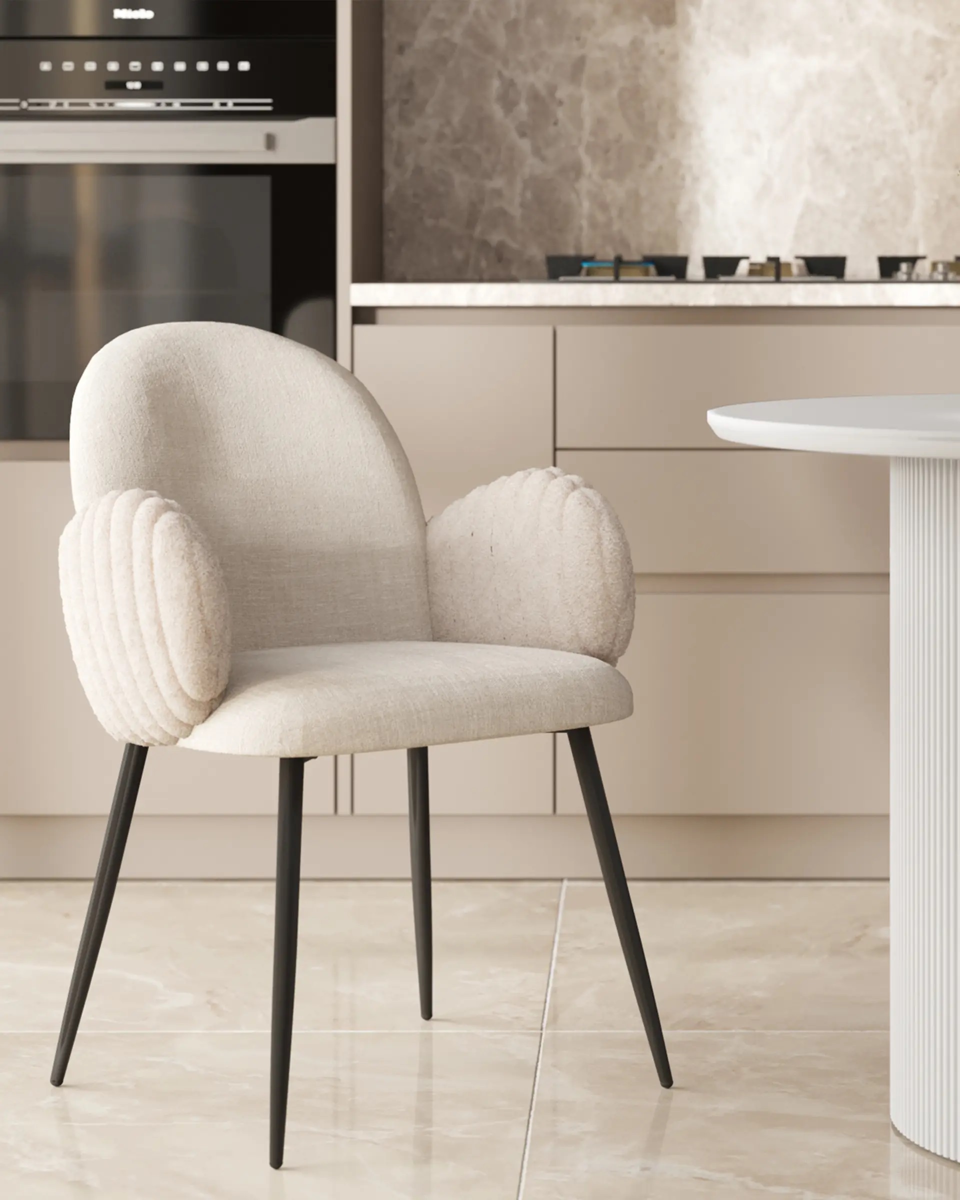 Лаконичный обеденный стул Wave Stripes в мягкой обивке имеет оригинальный стиль исполнения и способно стать частью любого современного интерьера. Широкое сиденье и компактная спинка обеспечат долгий и комфортный отдых. Обивка выполнена из плотного материала букле, который обладает мягкостью и долговечностью.