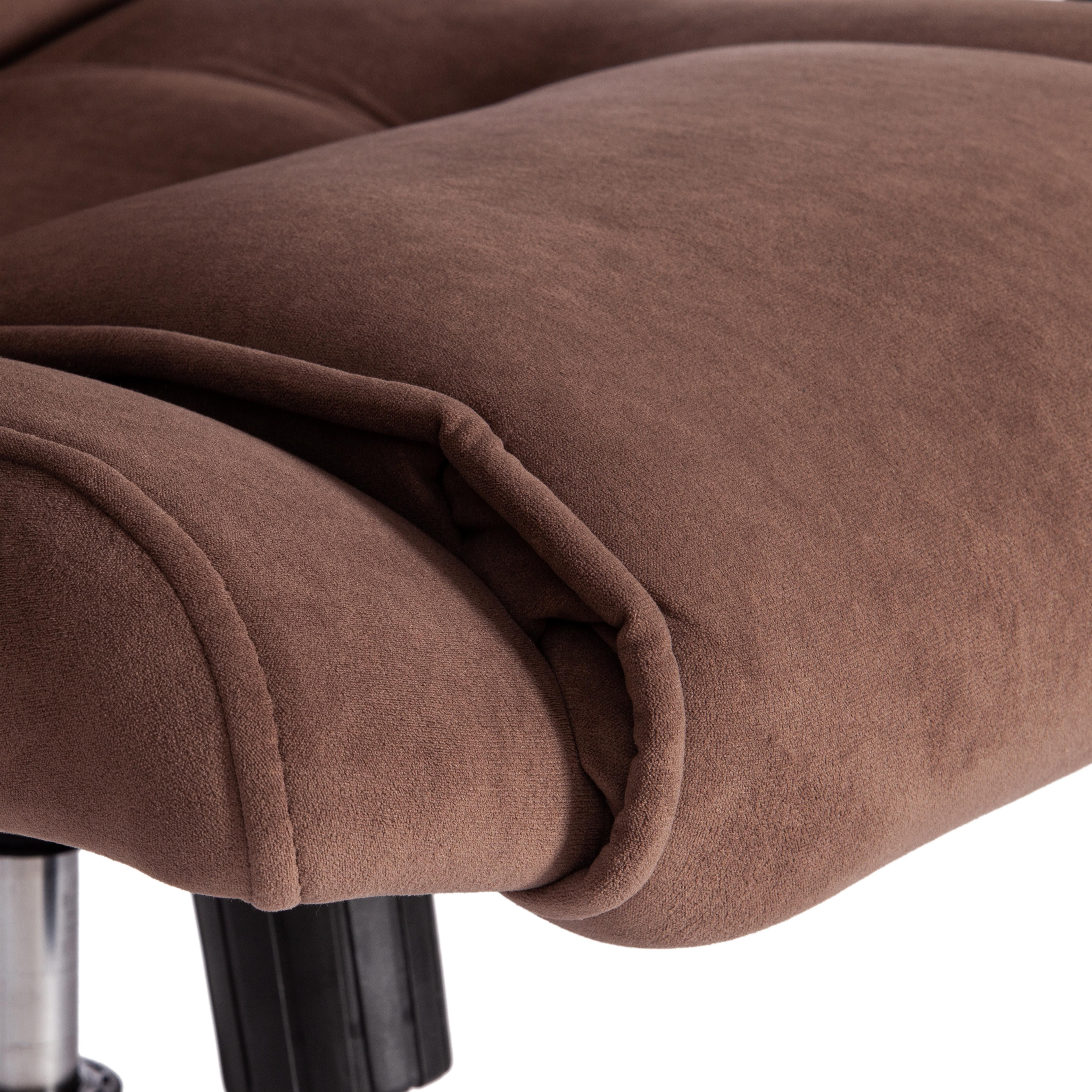 Надежный каркас выполнен из усиленной фанеры толщиной более 10 мм. Такой материал отличается практичностью, прочностью и основательностью. Сиденье и спинка с мягким наполнителем из пенополиуретана (до 35 кг/м2) стандартной плотности обладают долгим сроком службы, не деформируются, пропускают воздух, отводят влагу и не накапливают пыль. Хромированная крестовина устойчива, способна выдерживать большие нагрузки. Офисное кресло регулируется по высоте и наклону с фиксацией в одном положении.