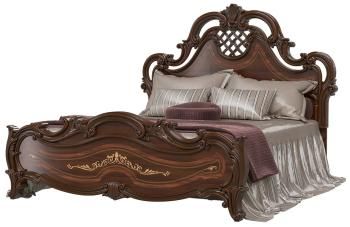Практичная кровать, со спальным местом 1600х2000 мм, комфортна для сна и отдыха семейной пары, и удобна даже для небольших комнат. Изысканный декор кровати органично соединяет затейливую рельефную лепнину и филигранный рисунок шелкографии.