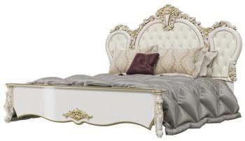 Резное кружево мягкого изголовья с ручной позолотой, эксклюзивные ножки и зеркальная гладь спинки – секрет красоты кровати Дольче Вита. Изголовье кровати задрапировано нежной искусственной кожей методом каретной стяжки, украшенной пуговками, наполнитель – прочный пенополиуретан.
