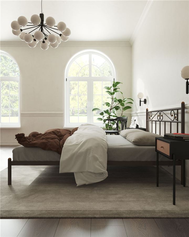 Кровать RB Франческа отличается жестким металлическим настилом и прочным изголовьем, что обеспечивает дополнительную устойчивость. Модель поставляется в разобранном виде, что упрощает транспортировку. Вес конструкции составляет 38 кг.