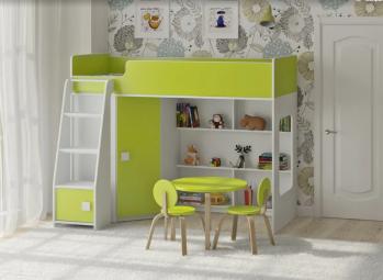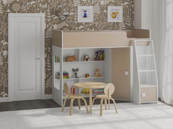 Внизу располагается игровая зона с полками – свой уголок для ребенка.