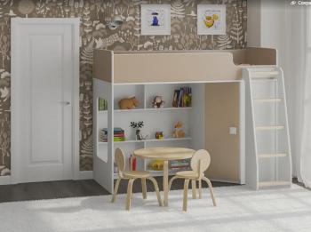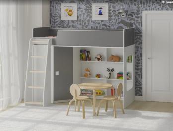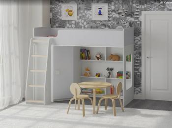 Внизу располагается игровая зона с полками – свой уголок для ребенка.