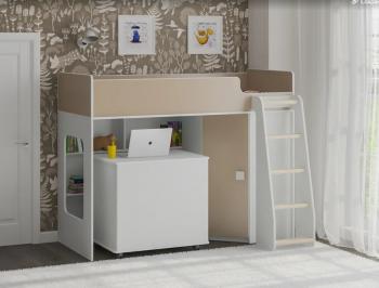 Внизу располагается игровая зона с полками – свой уголок для ребенка.