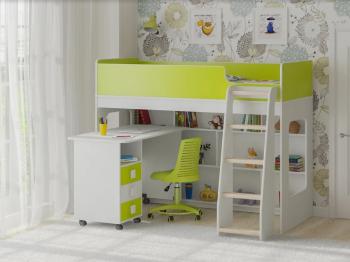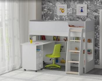 Внизу располагается игровая зона с полками – свой уголок для ребенка.