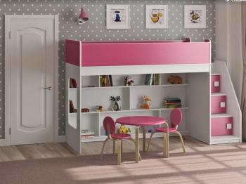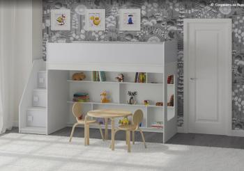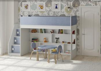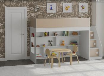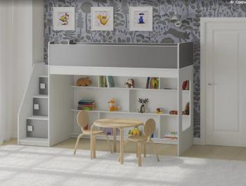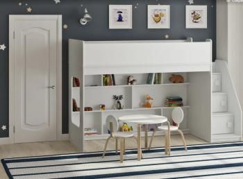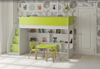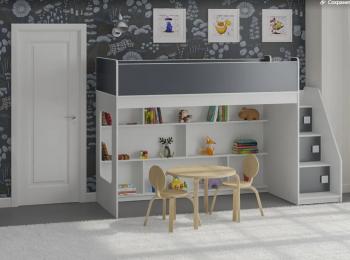 Внизу располагается игровая зона с полками – свой уголок для ребенка.