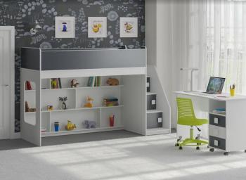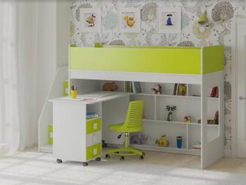 Внизу располагается игровая зона с полками – свой уголок для ребенка.
