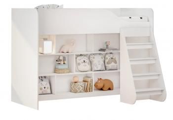 Универсальная кровать-чердак Трио с комфортной лесенкой, подходящей как нельзя лучше для детей и обширными отделами для хранения и организации пространства. Высокий защитный бортик убережет ребенка от падения.