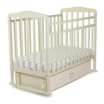 Классическая детская кроватка “Митенька” поперечный маятник – не имеющая ничего лишнего, но вместе с тем, оснащённая всем необходимым для Вас и вашего малыша. Передняя стенка особенно надежна и долговечна благодаря тому, что подвижна только верхняя планка. Модель с маятниковым механизмом поможет укачать малыша. Маятник можно зафиксировать стопором. Ящик под ложем кроватки поможет всегда иметь под рукой всё необходимое. маятник поперечного качания 2 положения дна механизм опускания боковой стенки – кнопка ПВХ накладка – нет закрытый ящик Материал: кроватка: массив березы основание маятника: ЛДСП, МДФ Размеры: кроватка: 1110×1250×720 мм ложе: 120х60 см Производитель: СКВ, Россия