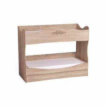 Отличным решением для многодетной семьи, позволяющее сэкономить место в квартире и создать уютный детский уголок, будет двухъярусная кровать ADELE. Светлый декор Дуб Сонома сделает детскую комнату просторнее и свежее, а стиль прованс добавит в атмосферу сказочности. Виньетки выполненные методом ультрафиолетовой печати придадут кровати красоты и изящества, а скругленные углы – обезопасят детей от ударов. Комплекс состоит из двух спальных мест и большого ящика на выкатных роликах. Верхний ярус оснащен защитной боковой спинкой, не позволяющей ребенку упасть во время сна или игр на 2-ом этаже. Дно спальных мест кроватей выполнено из ЛДСП и усилено специальными ребрами жесткости из фанеры 18 мм, что позволит выдержать нагрузку до 80 кг. Размер матраса для спального места: 190 х 90 см, высотой до 18 см. Оптимальное расстояние между верхним и нижним ярусом кровати позволит ровно сидеть на постели как ребенку, так и взрослому. Кроме того, двухъярусная кровать ADELE очень функциональна. Разложить любимые игрушки, будильник или лекарства, чтобы те были всегда под рукой, помогут боковые полочки на кровати, а хранить постельное белье удобно в выдвижном ящике с 2 отделениями. При необходимости организовать дополнительное спальное место подружке, которая останется ночевать, достаточно убрать делитель и положить матрас. Размер матраса для дополнительного спального места: 200 х 80 см, высотой до 18 см.