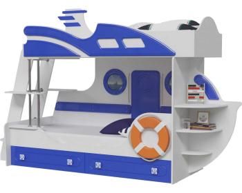 Кровать 2-х ярусная от набора Парус Яхта-2 восхищает оригинальностью формы, продуманностью всех деталей и поражает великолепием дизайна. Прочная кровать удобная для сна и отдыха двоих ребят – надёжная лесенка на второй ярус, защитные бортики, закруглённые полочки на носу Яхты. Спальные места кровати имеют размер 800х1900 мм. и оборудованы основаниями. Для этой кровати приобретаются отдельно матрасы. Вместительные ящики кровати обеспечат аккуратное хранение постельных принадлежностей и порядок.