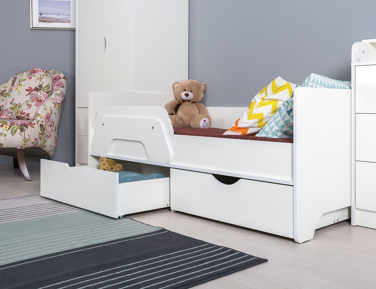 - Универсальный дизайн - белый цвет с текстурой "поры дерева" подойдет как для девочек, так и для мальчиков