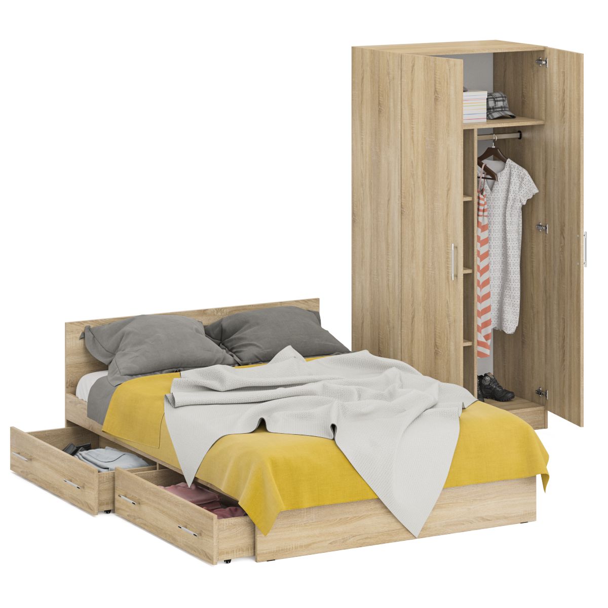 Кровать с ящиками СВК 1400 + Шкаф 2-х створчатый Стандарт