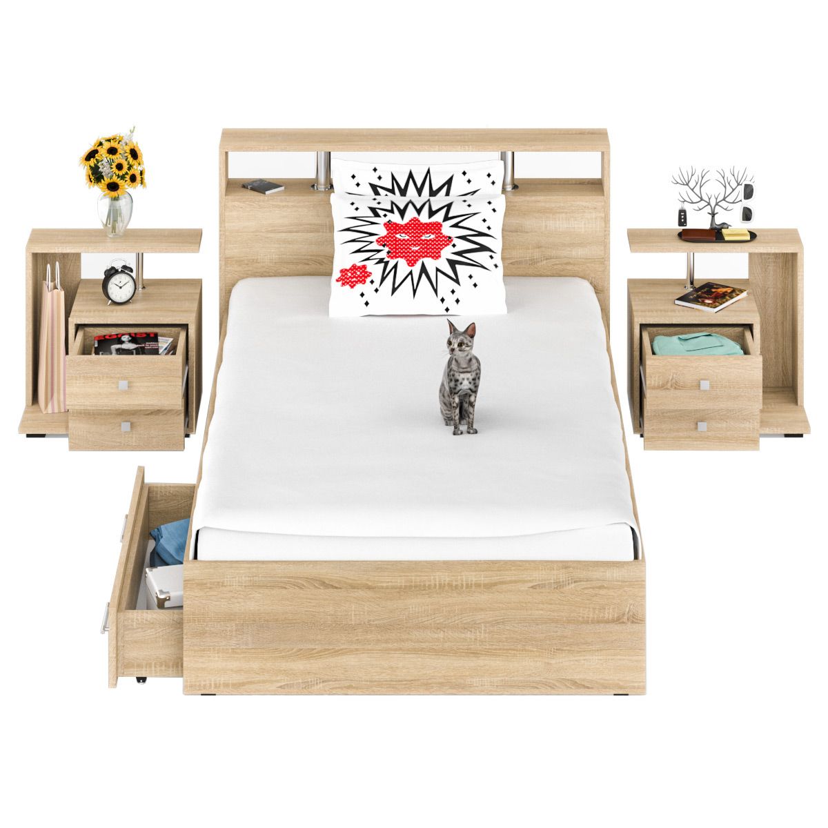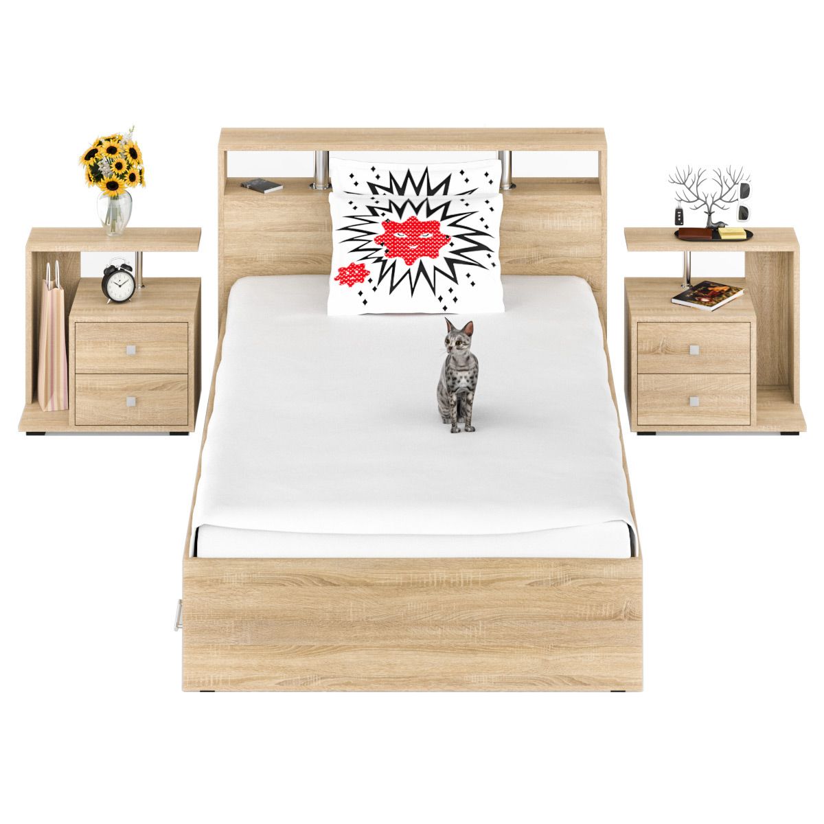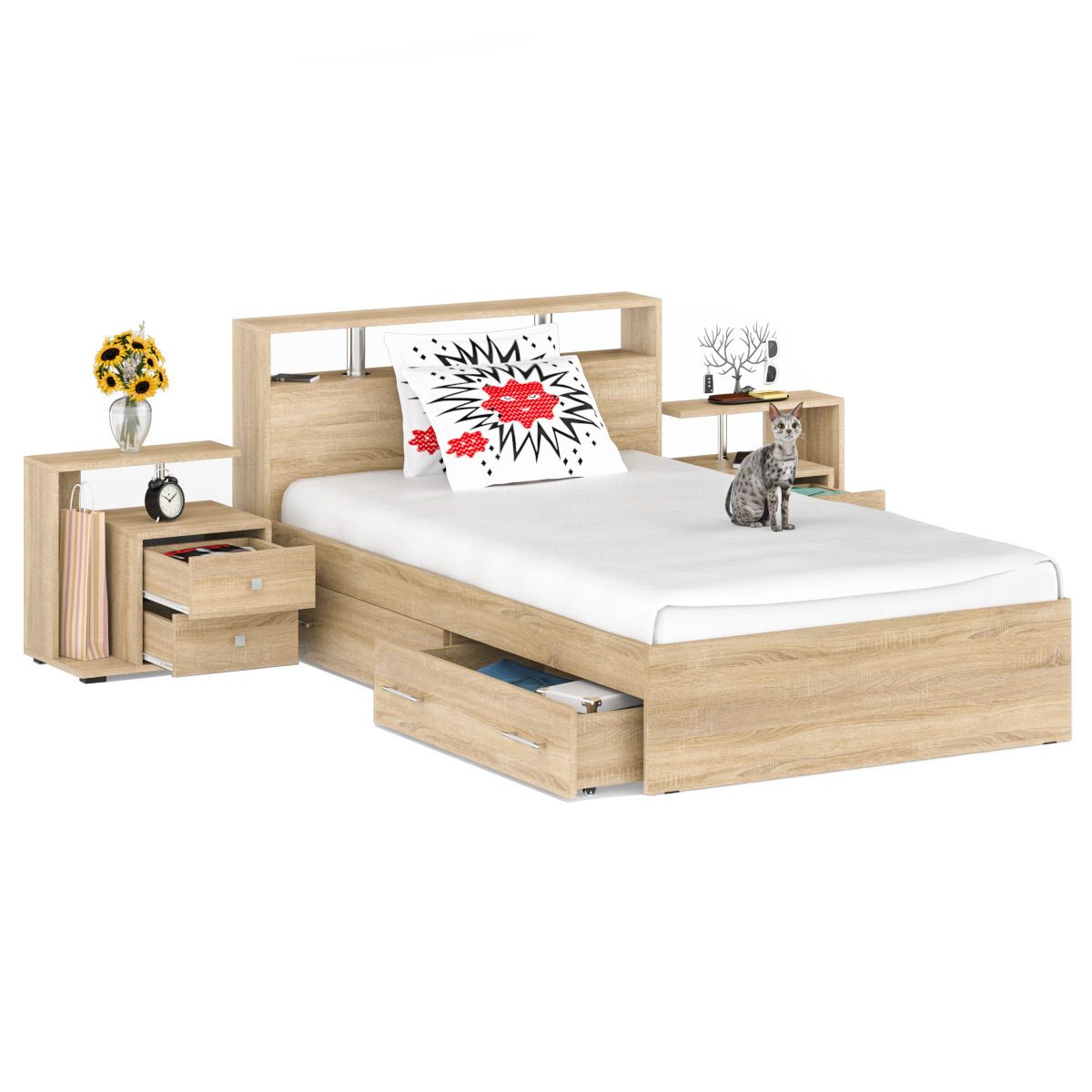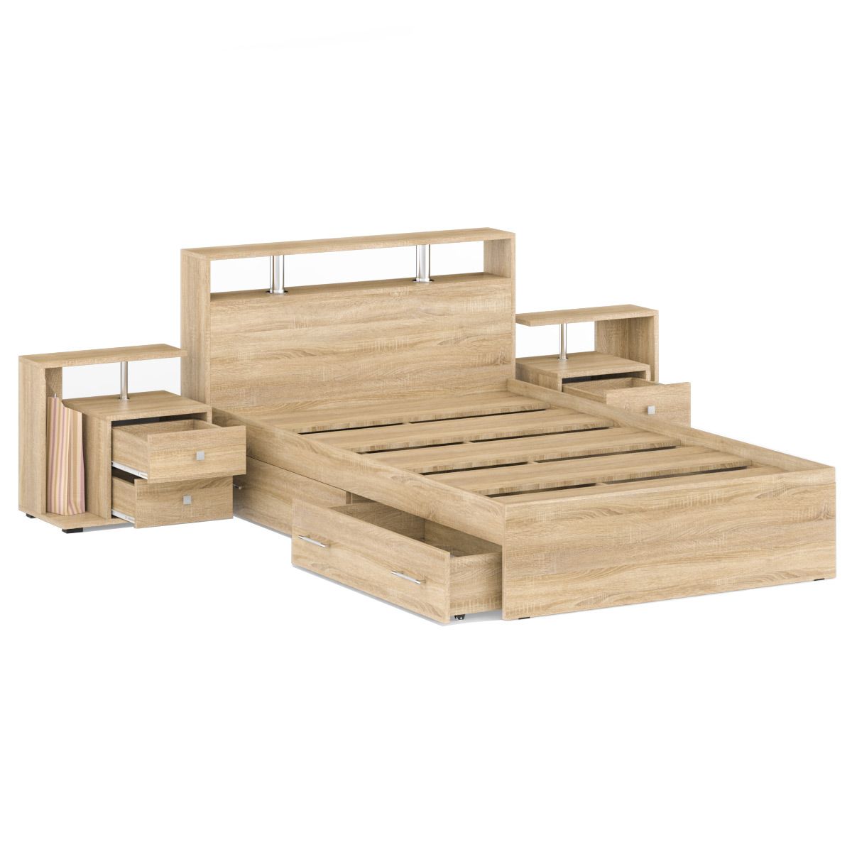 Кровать с ящиками СВК Камелия 1400 + две тумбы