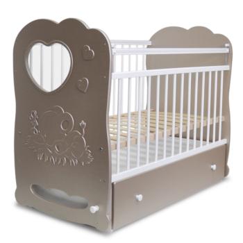 Красивая и удобная кроватка «Слоненок» с поперечным маятником – сон в такой кроватке будет здоровым и безмятежным, а красивые резные аппликации на корпусе будут радовать глаз малыша днем. Оригинальный дизайн кроватки делает ее произведением мебельного искусства. Отделка кроватки выполнена с использованием кристаллов Swarovski. Смотровое окошко изготовлено из оргстекла немецкой торговой марки PLEXIGLAS®, экологически чистого материала, который не выделяет никаких токсических веществ и абсолютно безопасен.