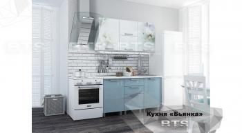 Кухня “Бьянка” – легкий и воздушный интерьер, где доминируют воздушность и торжественность благодаря ажурным цветам. Небесный оттенок фасадов с искрящимися серебристыми блестками освобождает и дарит ощущение бесконечности.