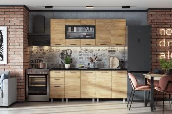 Гарнитур Аризона – практичное решение для организации кухонной зоны в трендовом исполнении. Выполнен из высококлассного ЛДСП в декоре дуб крафт золотой/белый. Древесный рисунок представлен в теплых золотистых тонах с вкраплениями, а сходство с натуральным деревом усилено текстурой покрытия. Материал имеет повышенную плотность, предотвращающую появление сколов: благодаря жесткой конструкции Вы сможете в случае необходимости собрать и разобрать гарнитур несколько раз.