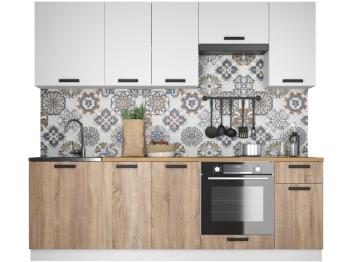 Кухонный гарнитур Империал Ника Нео 2,4 м с вытяжкой – это идеальный выбор для компактных кухонь, выполненный в стилях сканди, лофт и экоминимализм. Купить кухонный гарнитур Империал Ника Нео 2,4 м с вытяжкой в Москве можно без особых усилий. Этот функциональный комплект включает модули с лаконичными фасадами из ЛДСП, оформленными в актуальных природных оттенках и классическом белом цвете, что создает спокойную и гармоничную атмосферу, визуально расширяющую пространство.