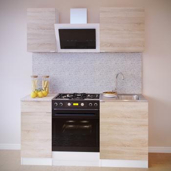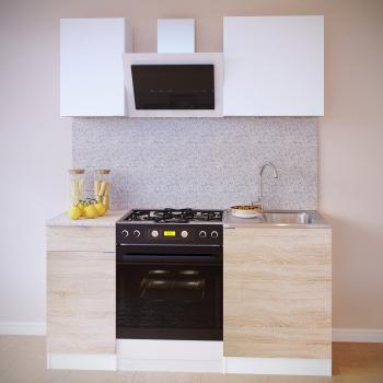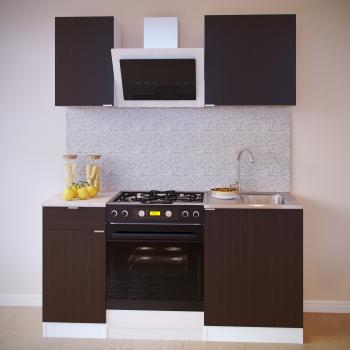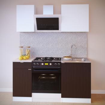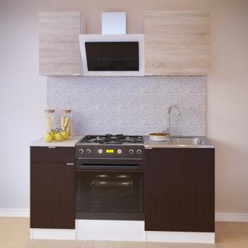 Маленький прямой кухонный гарнитур имеет в своем составе необходимые модули для обустройства удобной рабочей зоны на небольшой кухне.