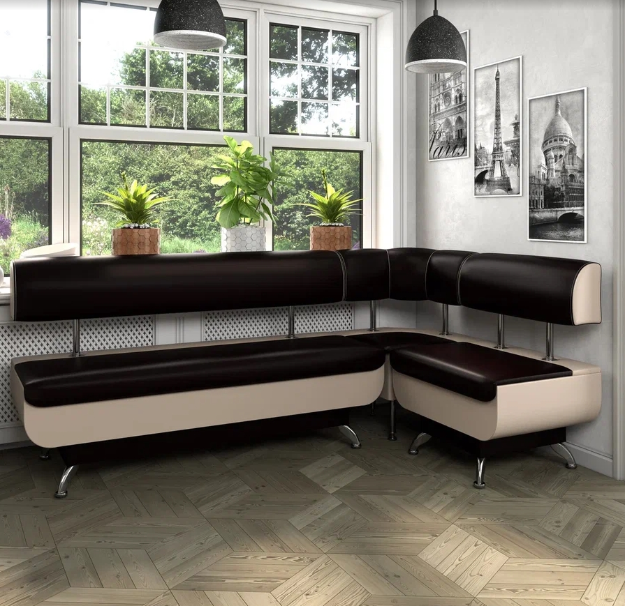 Кухонный набор Betel Угловой диван Валенсия (МД-1500+МУ-500+МД-700)+ стол Флорида СМ-5 нога массив прямая+Стул Рим 2шт.