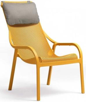 Кресло Net Lounge выделяется своим минималистичным дизайном, извилистым профилем, напоминающим нежные морские волны. Низкое положение сиденья и продуманный наклон спинки облегчают эргономичное распределение веса тела и его благополучие. Конструкция легкая и дышащая благодаря радиальному рисунку квадратных перфораций, равномерно распределенных по трехмерной поверхности кресла, матовой, слегка закругленной и приятной на ощупь.