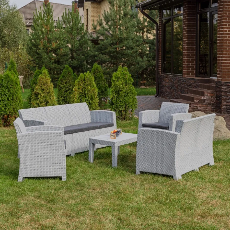 Стол изготовлен из прочного полипропилена, окрашенного в массе, что обеспечивает его долговечность и устойчивость к внешним воздействиям. Этот материал гарантирует надежность и легкость в уходе.