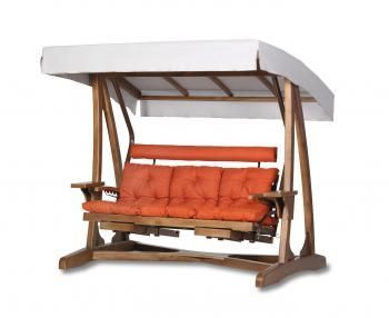 Материал каркаса – ель. навес – ткань Оксфорд 300D, матрацы терможаккард. Отличие модели с префиксом “М” в наличии подставки для ног и боковых столиков. Максимальная нагрузка – 240 кг.