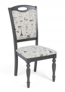 Каркас стула выполнен из массива гевеи, сиденье и спинка обиты тканью с рисунком Париж.