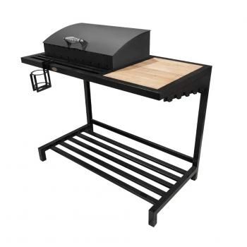 Приобретая гриль-мангал «Лофт 1», вы получаете надежный мангал из стали толщиной 3 мм в термостойкой покраске. Крышка мангала защищает жаровню от попадания в нее осадков. Столешница под мангал выполнена из древесного массива. Так же в комплекте есть держатель для бутылки.